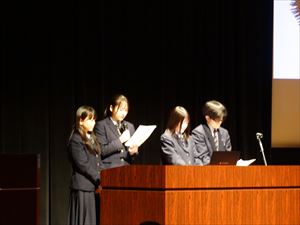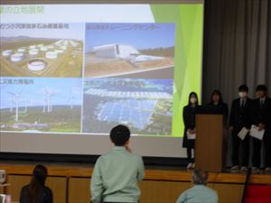 - 六ヶ所村文化交流プラザスワニーで、総合的な探究の時間・課題研究・エネルギー探究の授業の成果を代表者が発表しました。アドバイザーに青森大学総合経営学部経営学科長の沼田郷教授をお招きし、来賓や保護者にも参観していただきました。